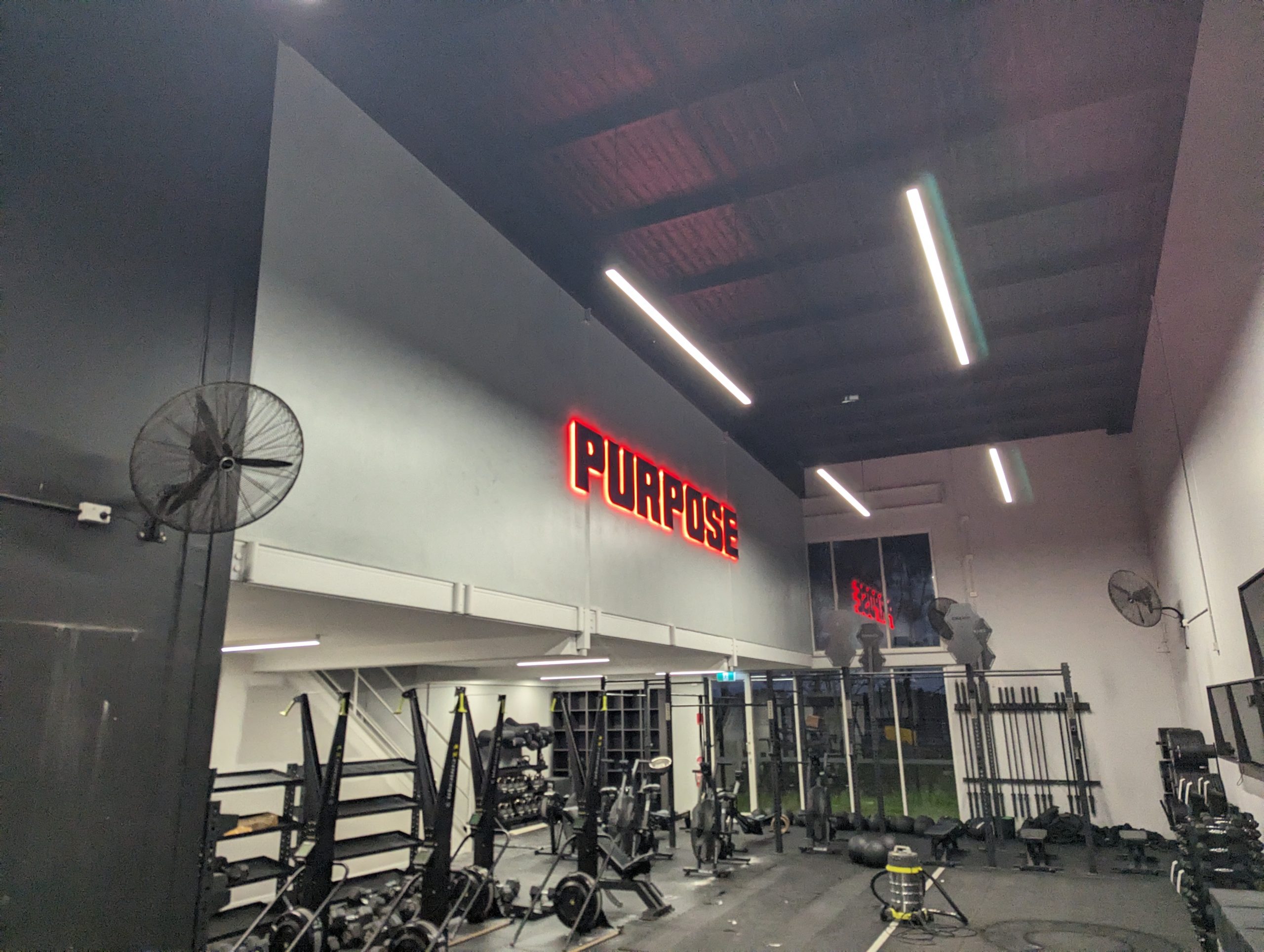 Clean ACM panels paired with bold backlit LED signage gave Purpose Fitness a sharp, professional look that shines day and night. A durable install built to inspire members and grab attention from the street.